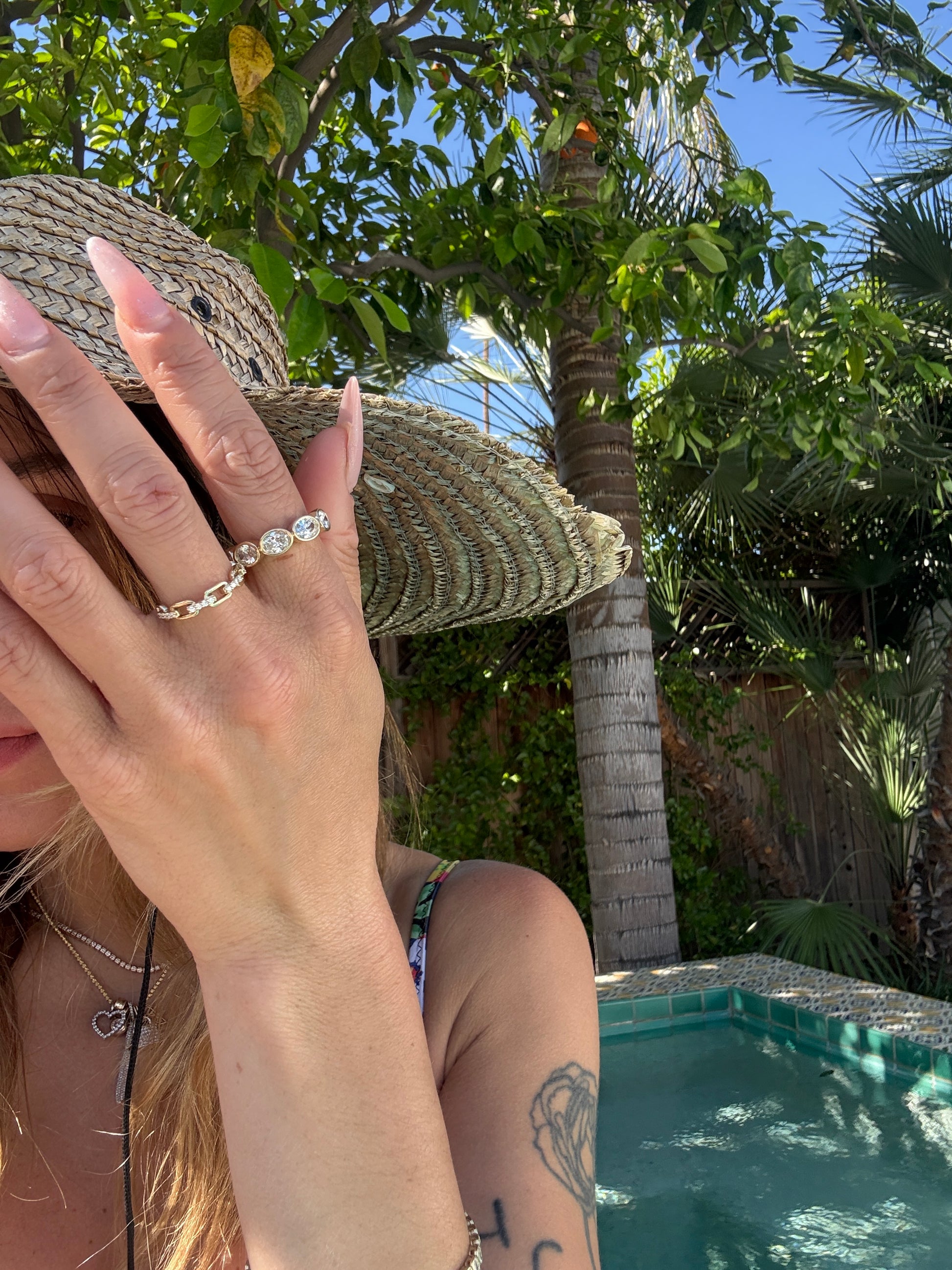 0.20ctw of colorless round brilliant cut lab grown diamonds, pave set across 5 rectangular gold links. This fashion stackable is the perfect balance of gold + some sparkle!