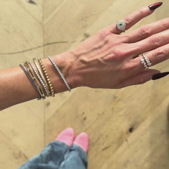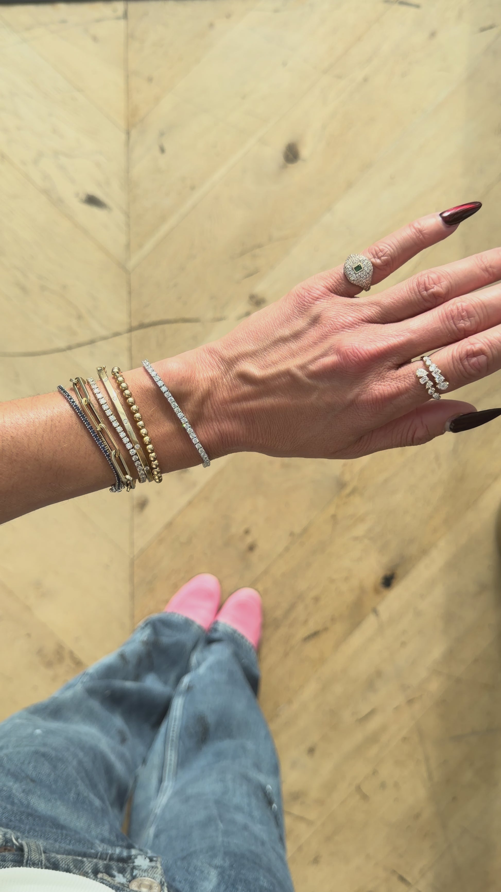 We make every tennis bracelet to order in NYC based on your preferred metal color + approximate wrist size, so feel free to get sized locally and get specific!